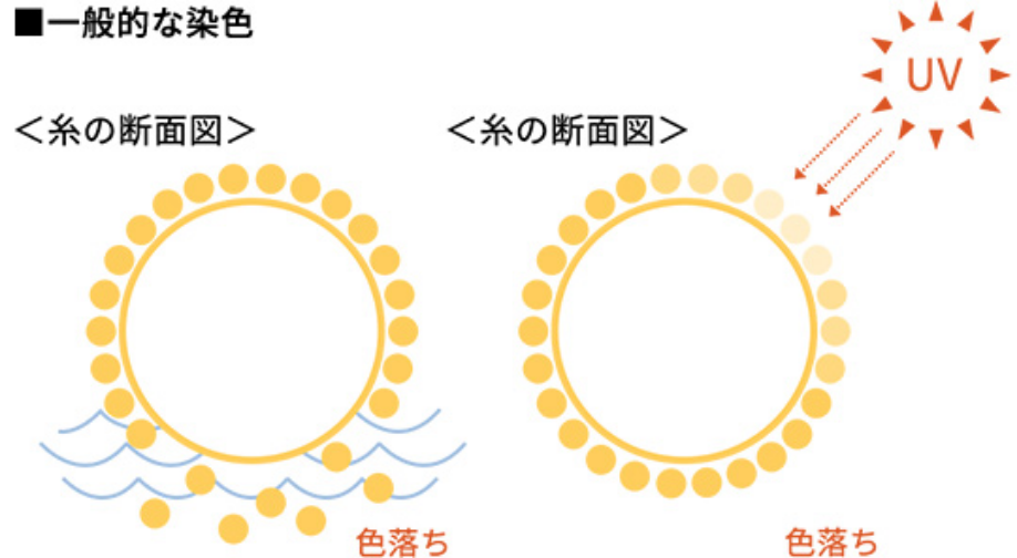 繊維自体に色が着色されているので、色落ち、色褪せしにくいのが特長です。